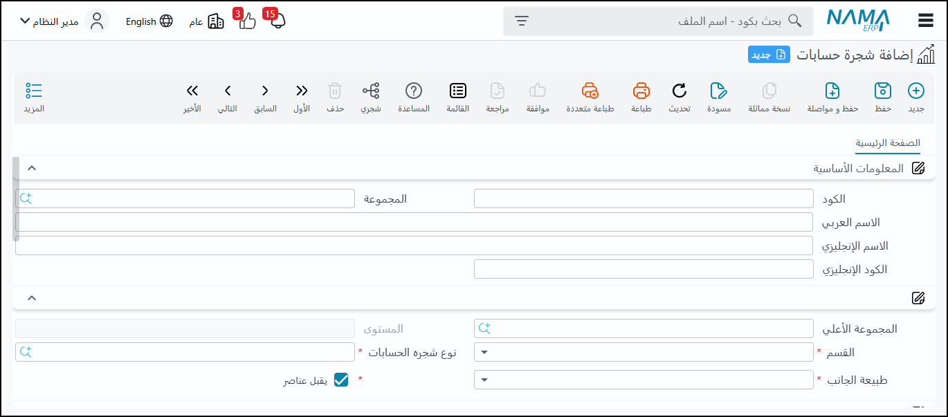 - المستوى الأخير: تجرى عليه الحركات (مثل حسابات الصناديق، البنوك، العملاء، الموردين)