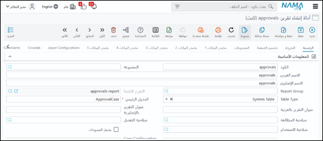 الغرض: تمكن المستخدمين، حتى لو لم يكن لديهم معرفة بلغة الاستعلامات (SQL)، من إنشاء تقارير مخصصة بسهولة وسرعة، هذه الأداة بديل للطرق التقليدية التي تتطلب معرفة برمجية وأدوات تصميم مثل Jasper Reports أو Crystal Reports.