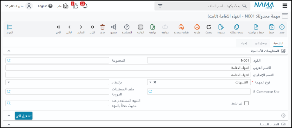 ملاحظة: الكود النهائي للمستند يكون فريداً على مستوى الشركة ولا يمكن تكراره